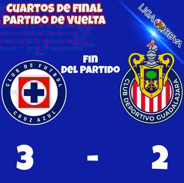 En un partido cargado de emociones, volteretas y tensión hasta el último minuto, Cruz Azul venció 3–2 a Chivas en el duelo de vuelta de los cuartos de final del Apertura 2025, resultado con el que La Máquina aseguró su pase a las semifinales del torneo.
