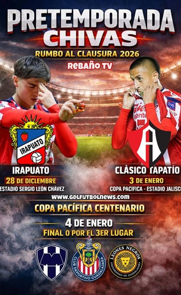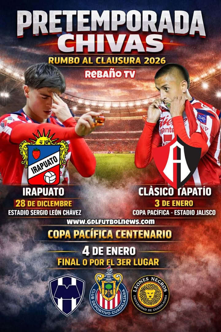 Tras ese duelo, Chivas participará en la Copa Pacífica Centenario, un cuadrangular amistoso que se jugará en el Estadio Jalisco los días 3 y 4 de enero. En este certamen de preparación, el Rebaño se medirá primero al Atlas FC, su eterno rival en el Clásico Tapatío, ofreciendo un ensayo con sabor especial antes de que comience el Clausura 2026. Dependiendo del resultado, Chivas jugará luego la final o el partido por el tercer lugar contra uno de los otros equipos invitados (como Monterrey o Leones Negros).